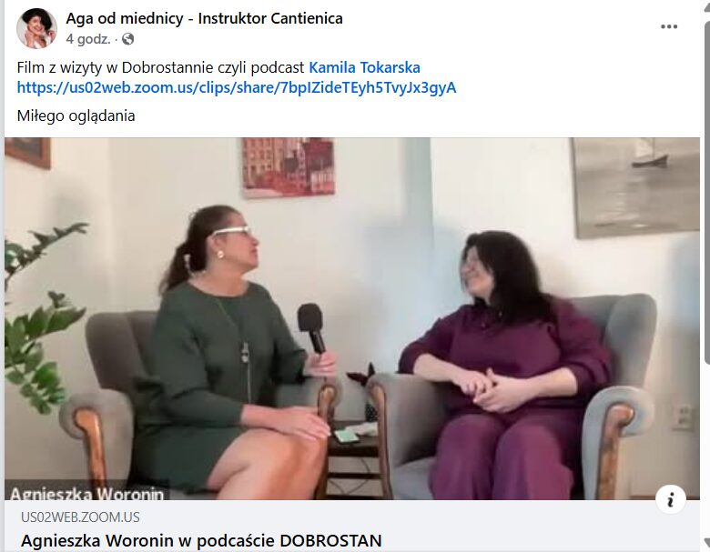 - Przeprowadzam z Tobą profesjonalny wywiad online – prowadzę rozmowę w rytmie, który Ci odpowiada. Jako live na żywo, jako nagranie do wykorzystania później. Spotkanie jest w Warszawie lub online na Zoom.